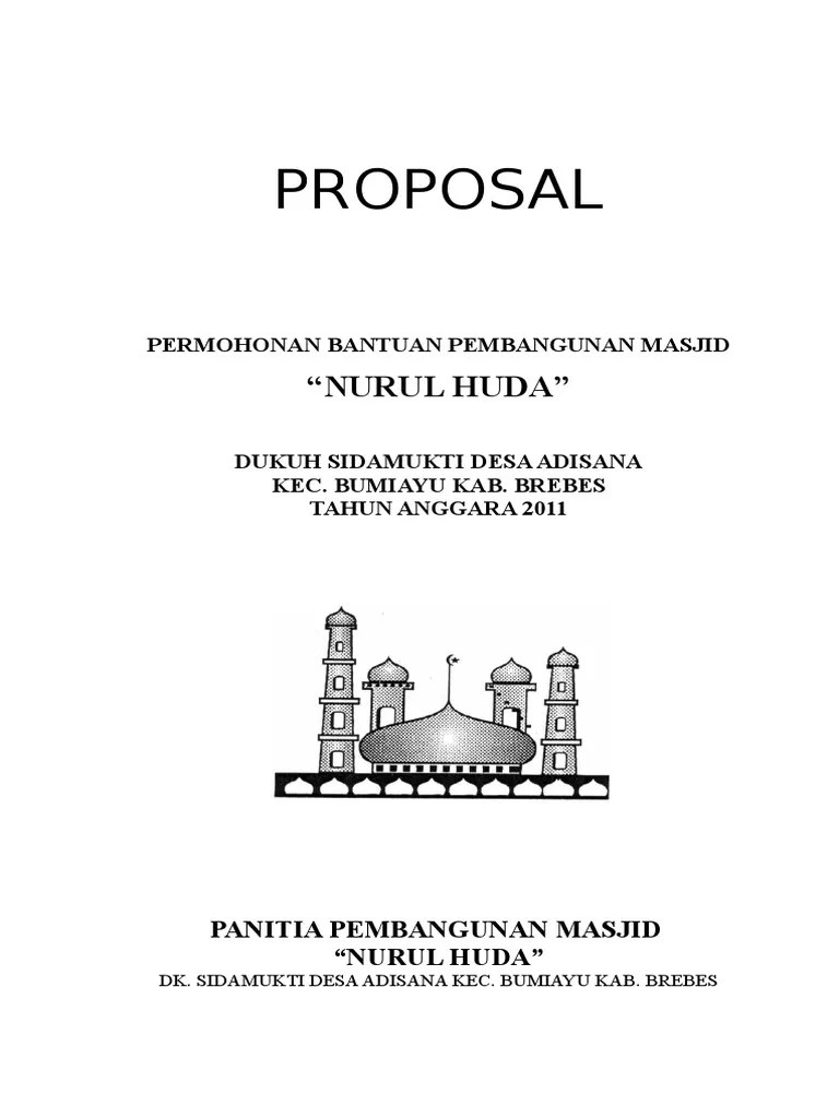 Panitia pembangunan mushola at taqwa. Contoh proposal pengajuan dana pembangunan masjid tutup kurung. Bantuan dapat disampaikan secara langsung kepada bendahara . 1 proposal pembangunan masjid nur hidayatullah dusun puluhan, desa ketep kecamatan sawangan,. Doc permohonan bantuan dana mushola gunawan r academia edu.